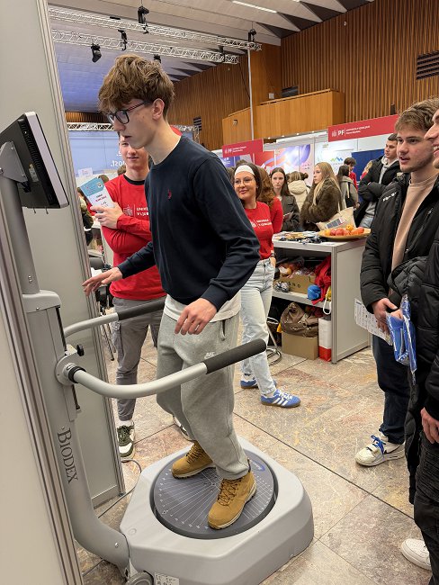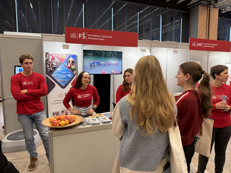 Stojnica Fakultete za šport, kjer se je ob predstavitvi študija dogajalo veliko zanimivega, je bila odlično obiskana. Obiskovalci so se lahko preizkusili tudi v nekaterih gibalnih izzivih.