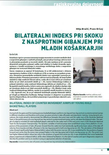 BILATERALNI INDEKS PRI SKOKU Z NASPROTNIM GIBANJEM PRI MLADIH KOŠARKARJIH