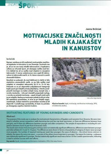 MOTIVACIJSKE ZNAČILNOSTI MLADIH KAJAKAŠEV IN KANUISTOV