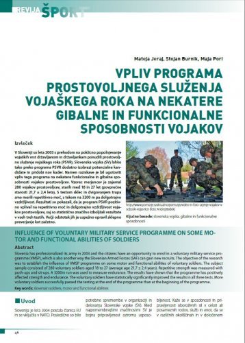 VPLIV PROGRAMA PROSTOVOLJNEGA SLUŽENJA VOJAŠKEGA ROKA NA NEKATERE GIBALNE IN FUNKCIONALNE SPOSOBNOSTI VOJAKOV