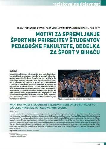 MOTIVI ZA SPREMLANJE SPORTNIH PRIREDITEV STUDENTOV PEDAGOŠKE FAKULTETE, ODDELKA ZA ŠPORT V BIHAČU