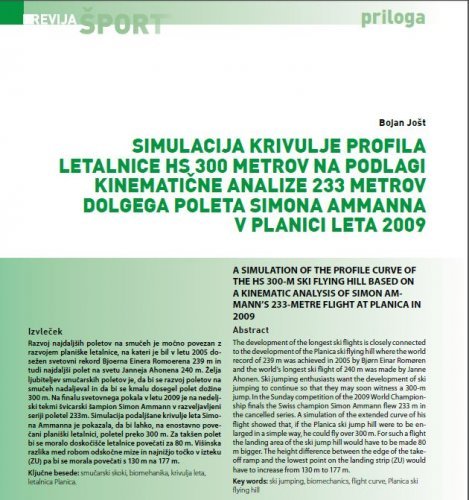 SIMULAIJA KRIVULJE PROFILA LETALNICE HS 300 METROV NA PODLAGI KINEMATIČNE ANALIZE 233 METROV DOLGEGA POLETA SIMONA AMMANNA V PLANICI LETA 2009
