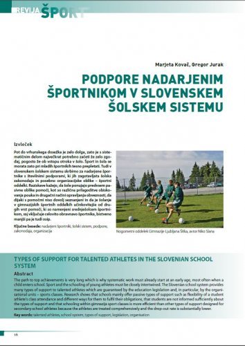 PODPORE NADARJENIM ŠPORTNIKOM V SLOVENSKEM ŠOLSKEM SISTEMU