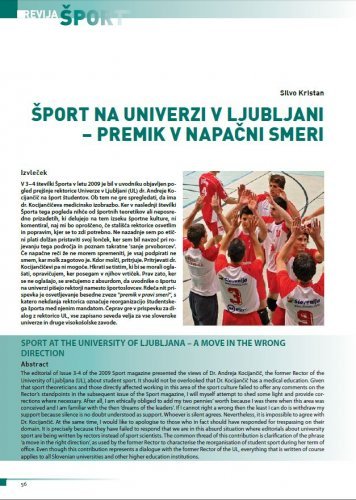 ŠPORT NA UNIVERZI V LJUBLJANI - PREMIK V NAPAČNI SMERI