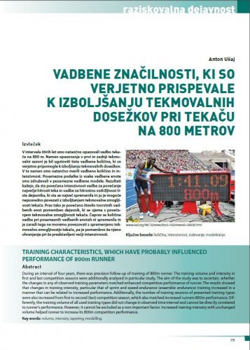 VADBENE ZNAČILNOSTI, KI SO VERJETNO PRISPEVALE K IZBOLJŠANJU TEKMOVALNIH DOSEŽKOV PRI TEKAČU NA 800 METROV