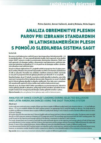 ANALIZA OBREMENITVE PLESNIH PAROV PRI IZBRANIH STANDARDNIH PLESIH IN LATINSKO AMERIŠKIH PLESIH S POMOČJO SLEDILNEGA SISTEMA SAGIT