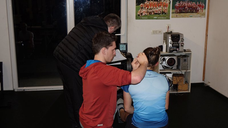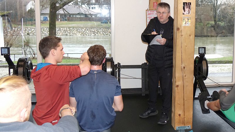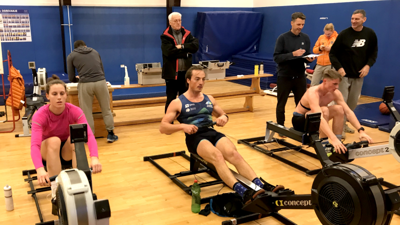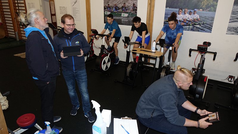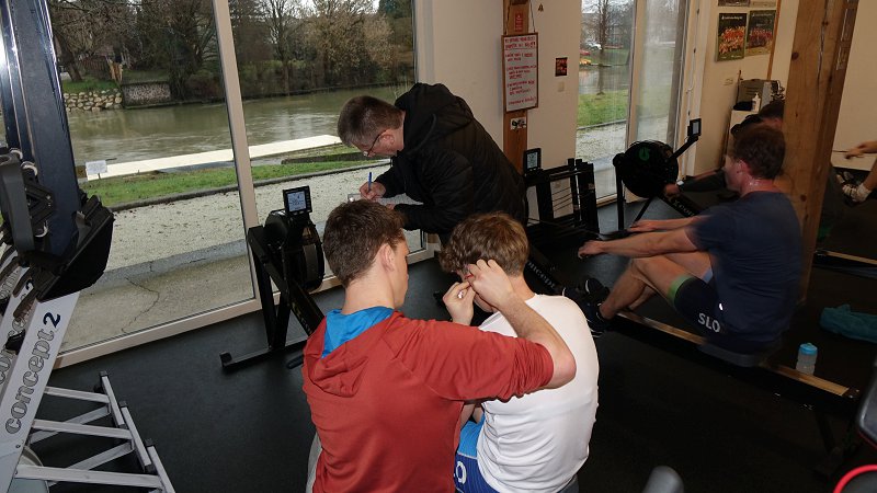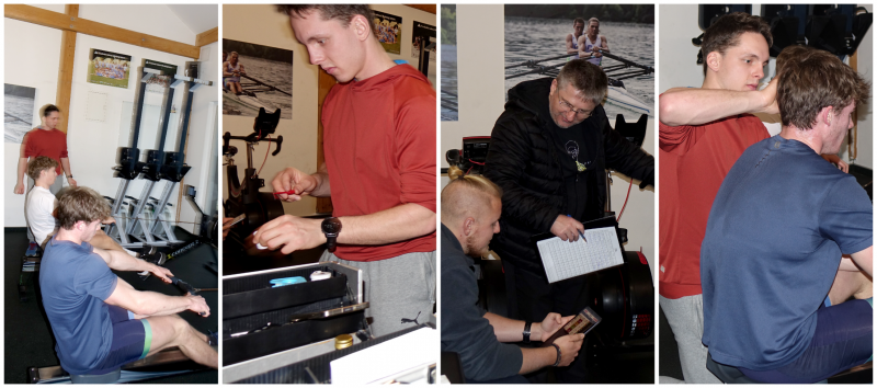 Metodologija Na veslaških trenažerjih se izvaja prekinjen stopnjevalni obremenitveni test. Hibridni protokol (1 x 5 min + 4 x 4 min z 1-minutnimi intervali za vzorčenje kapilarne krvi) predstavlja metodološki zlati standard terenskega testiranja. Sistem omogoča sočasno natančno detekcijo laktatnih pragov in doseganje maksimalne mehanske moči športnika.