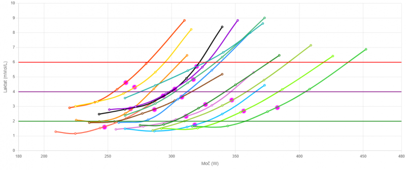 Longitudinalno testiranje zagotavlja objektivno verifikacijo adaptacij, ki se kažejo kot premik laktatne krivulje v desno (povečanje izhodne mehanske moči [W] ob nespremenjenem presnovnem stresu).